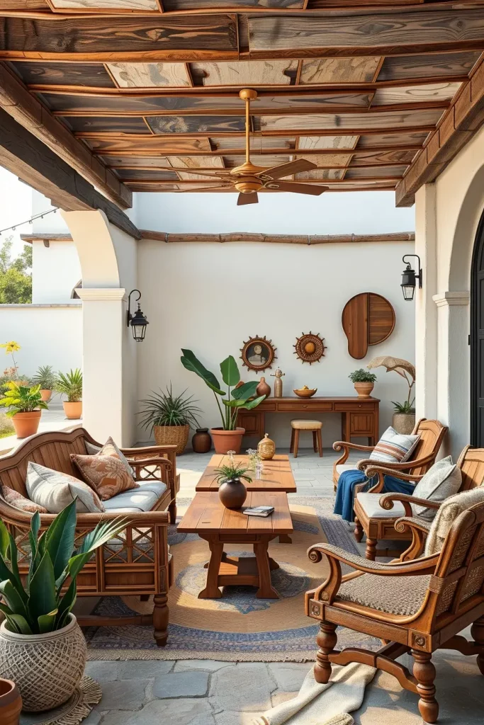 To enhance this section, I would include guidance on sourcing authentic handcrafted pieces and ensuring they are treated for outdoor durability without losing their natural appeal.