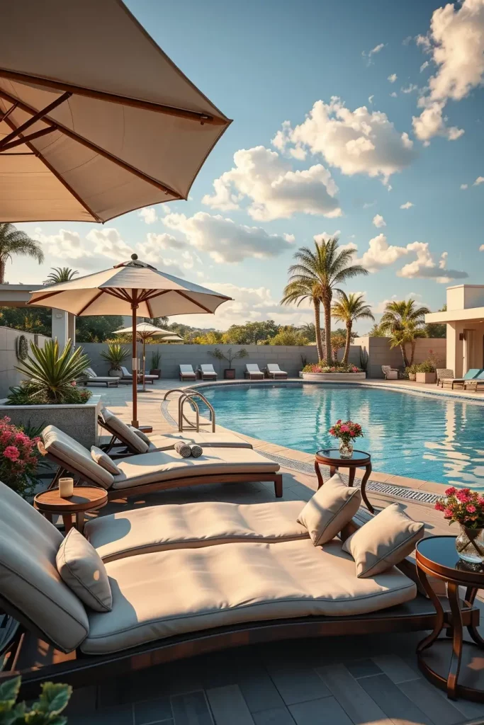 If I were to expand this section, I would suggest incorporating shaded areas or pergolas to complement the lounges and create a more comfortable environment during peak sunlight hours.