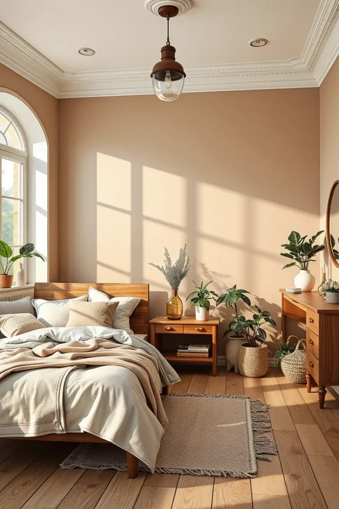 Picking ecological paints and toxin-free finishes for your bedroom is very important and easy to forget. I focus on using paints and sealants that do not contain VOCs and are made from plants for better indoor air. The choices are better for the environment and most often result in a matte surface that fits well with a natural style.