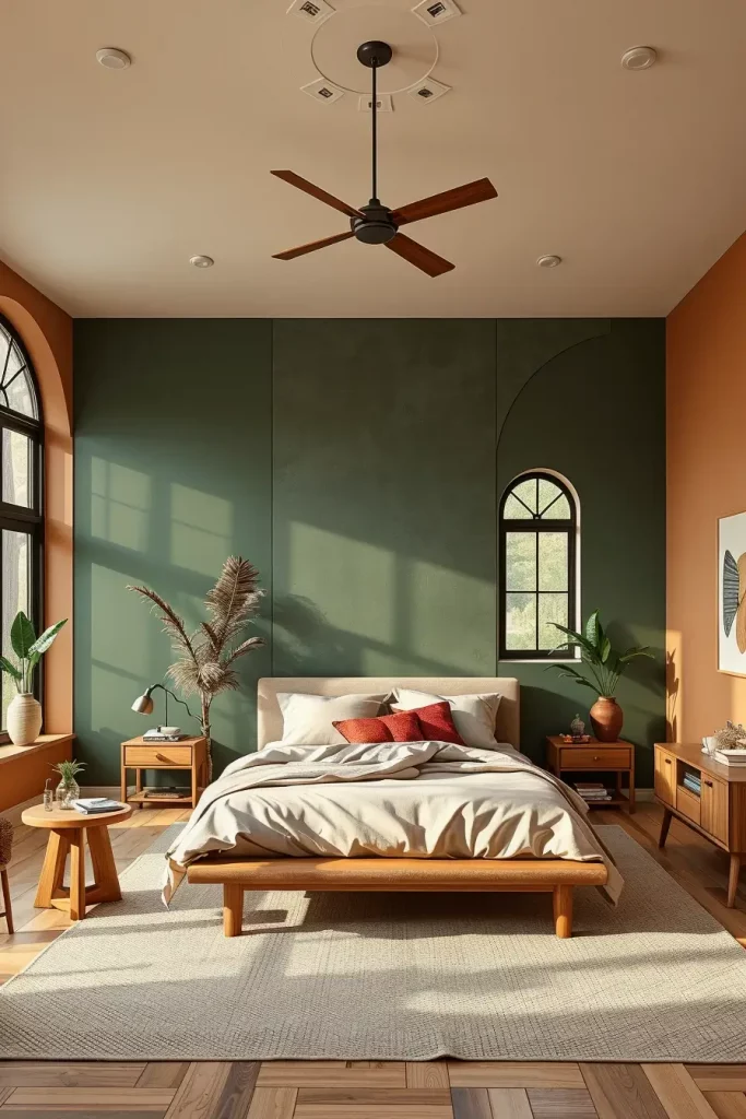 Going green in your bedroom isn’t only about style; it has a strong, positive effect on the way we relate to the outdoors. With large green views and lively plants, as well as using many types of wood, the space is made to help you rest and reset. Adding nature to your most personal room can improve your comfort, emotional state and quality of sleep.