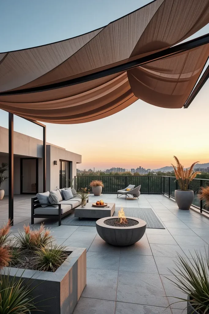 From my experience, sculptural canopy structures work especially well in contemporary gardens and rooftop terraces. Publications like Architectural Digest often highlight how strong geometric silhouettes can make even compact outdoor areas feel more intentional and designed. I agree with this approach because a canopy that acts as a sculptural element naturally anchors the entire outdoor composition.