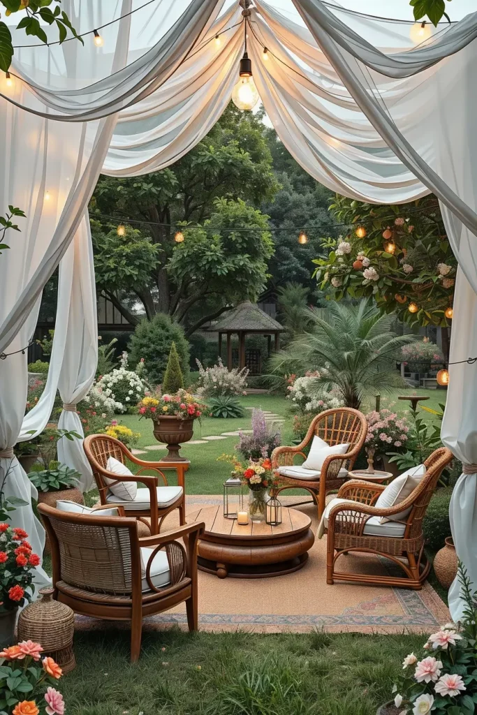 Elegant Flowing Fabric Canopies That Create Dreamy Garden Atmospheres