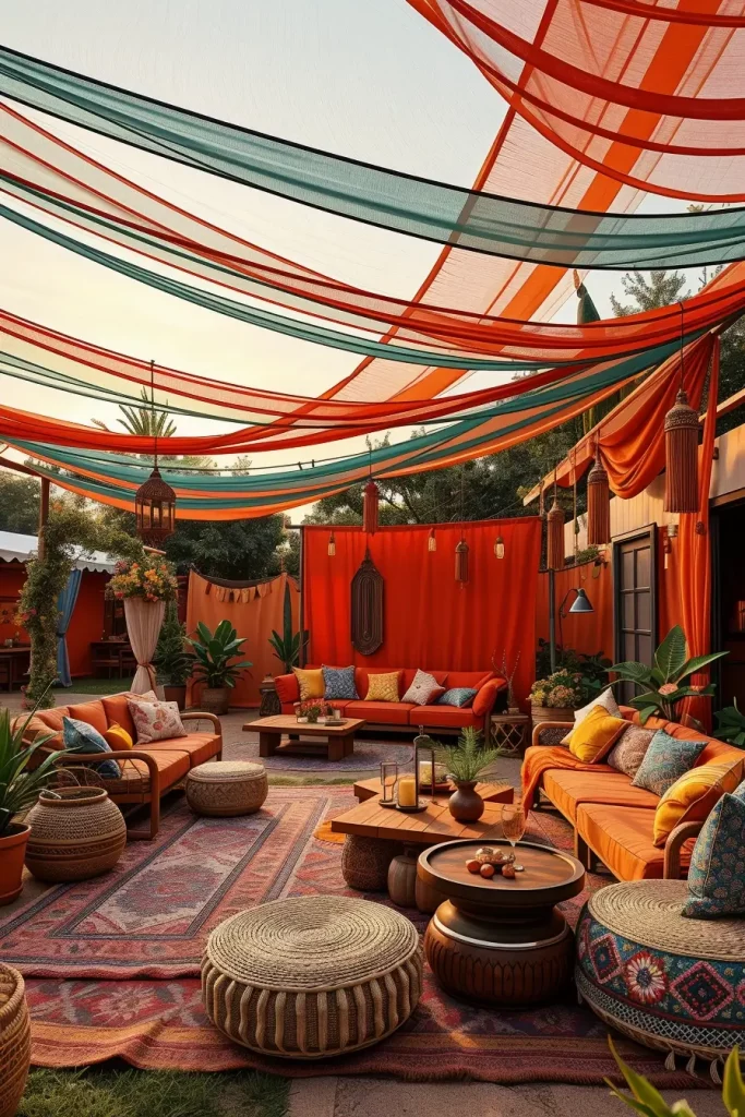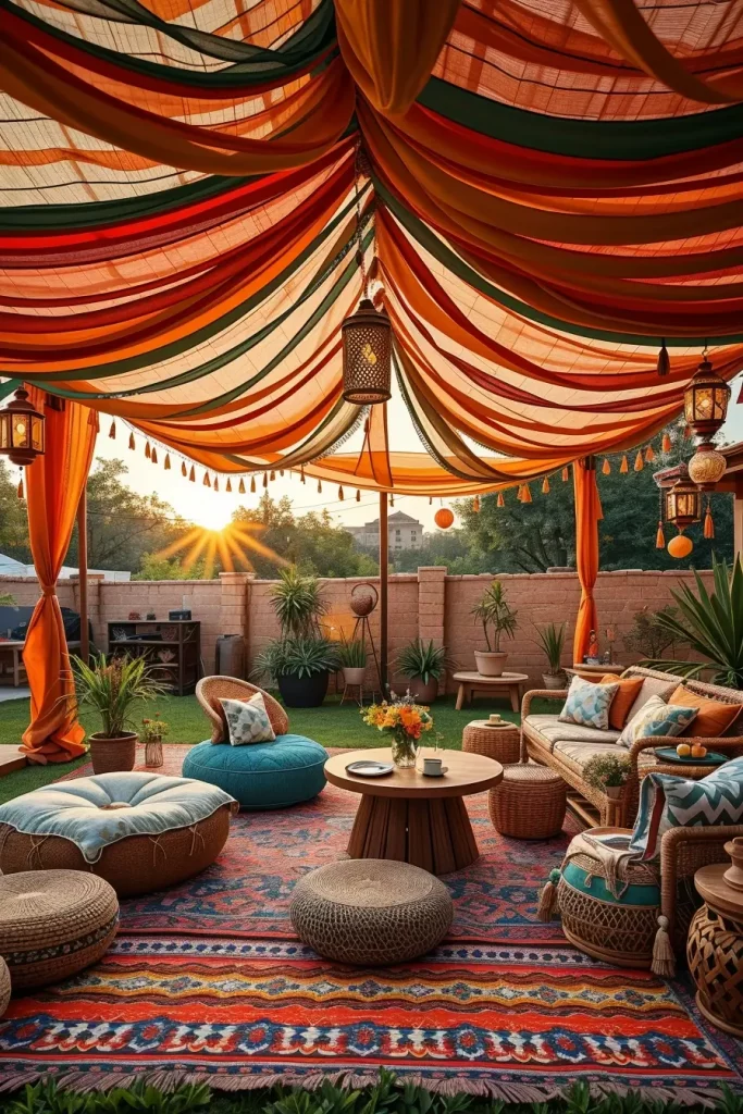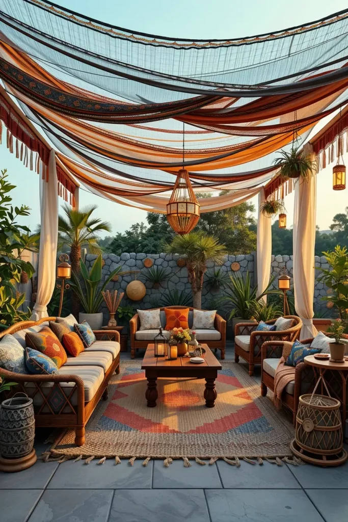Bohemian Layered Textile Canopies For Artistic And Relaxed Outdoor Retreats