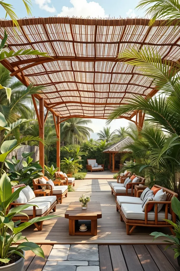 Among the most unique and environmentally inspired canopy design ideas 2026 are organic bamboo canopy structures influenced by tropical eco architecture. I often recommend bamboo when a project requires sustainable materials and a strong connection with nature.