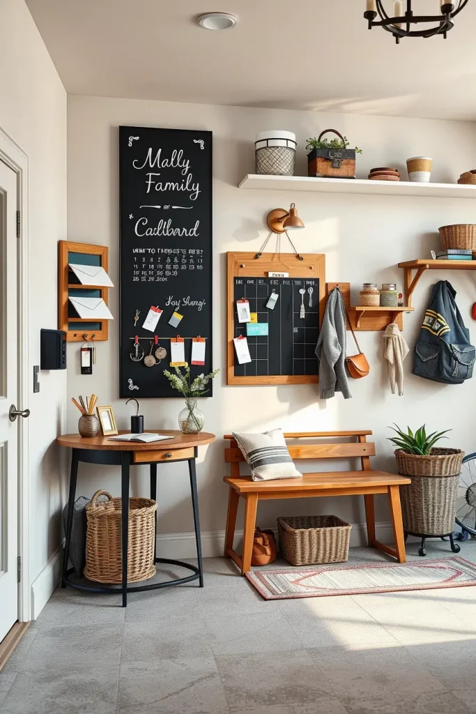 To enhance the practicality of this setup, I recommend incorporating a basket or a tray beneath it to accommodate larger packages and mail. You can mount a QR code that redirects to the family calendar as well.
