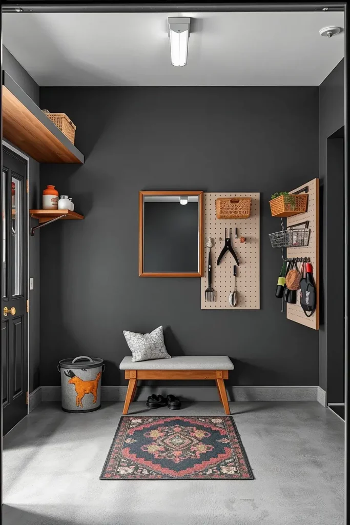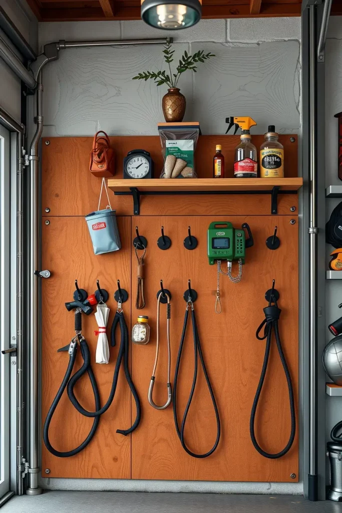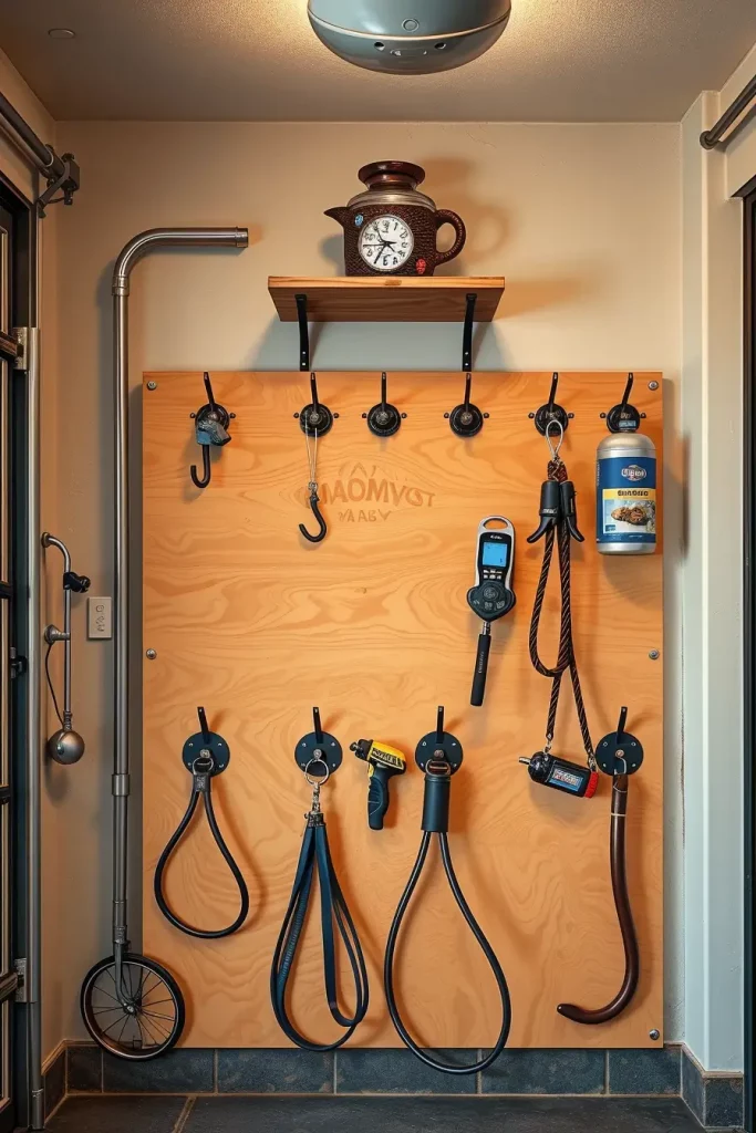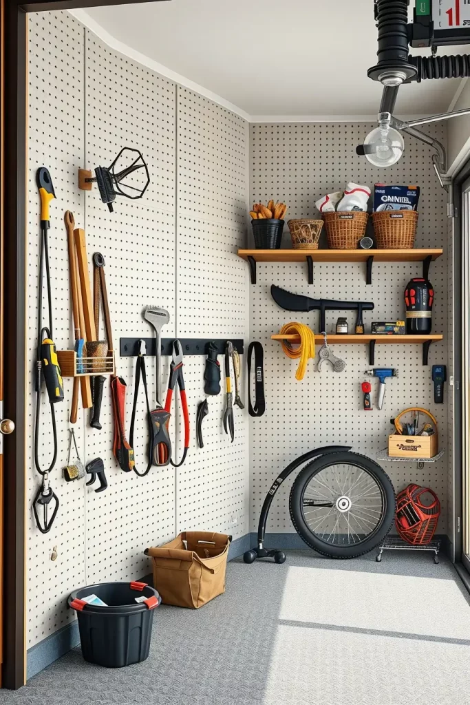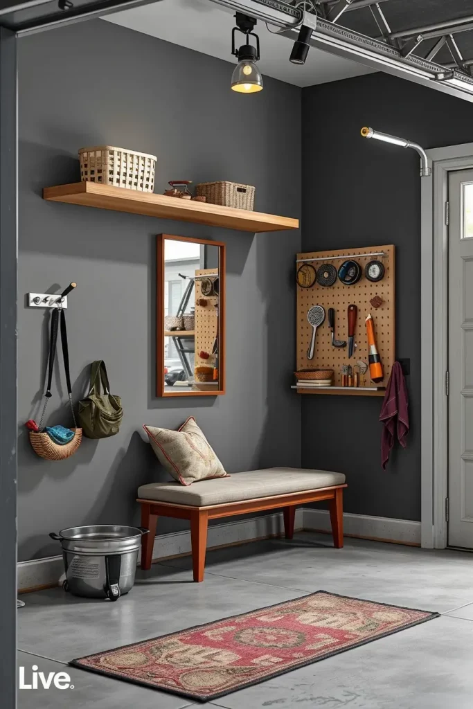 Pegboards I would say are a designer’s best friend when it comes to garage entryway zones. Why? Because they’re adaptable, sleek, and wonderful for maximizing vertical space. I have personally used them for organizing tools, accessories, and even pets like leashes. Used properly, pegboards make a space feel not only tidy, but also vibrant and purposeful.