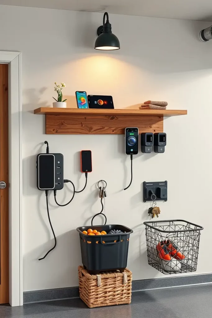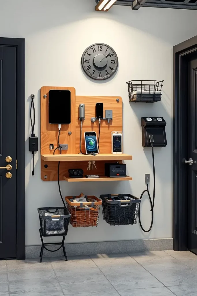 In this day and age, a charging station located near the garage entryway is more than just a perk; it’s a necessity. As a standard practice, I suggest adding USB ports alongside spaces meant for charging phones, tablets, and even e-bikes so that users can charge their devices after arriving home or before leaving. This transforms the entryway into a welcoming touch without making the kitchen or living room feel messy.