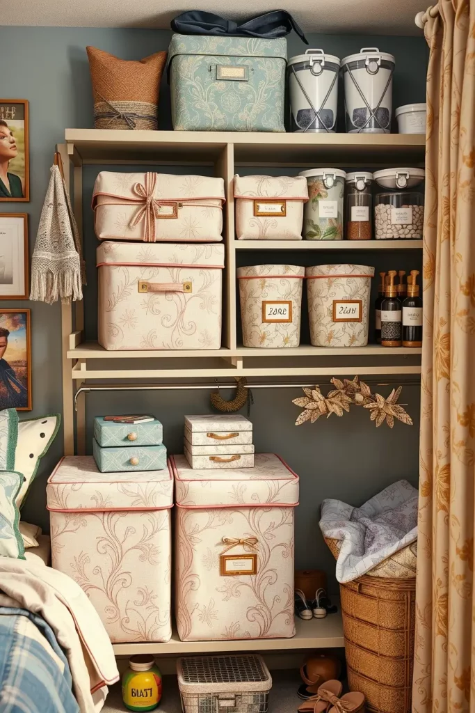 Tiny dorms require heavy sorting, and rolls of fabric-covered storage boxes are functional and good-looking. Taking plain cardboard boxes or plastic containers, I prefer covering them with patterned fabric to correlate them with my beddings or curtains. This will make the cluttered storages also look chic.