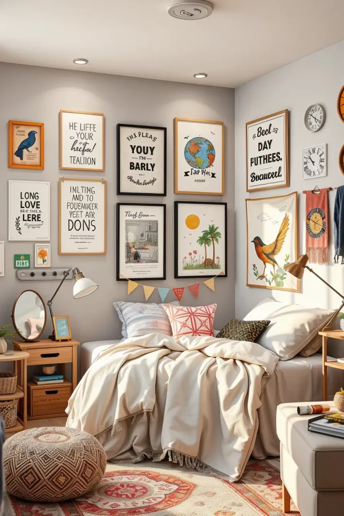 To my mind, this is one of the cheapest methods to transform a dorm room into a real home. HGTV suggests going big on typography prints, which I concur wholeheartedly with since they look highly curated and casual in the space. The art-gallery corner created through this approach received favourable comments by everyone regarding my dormitory.