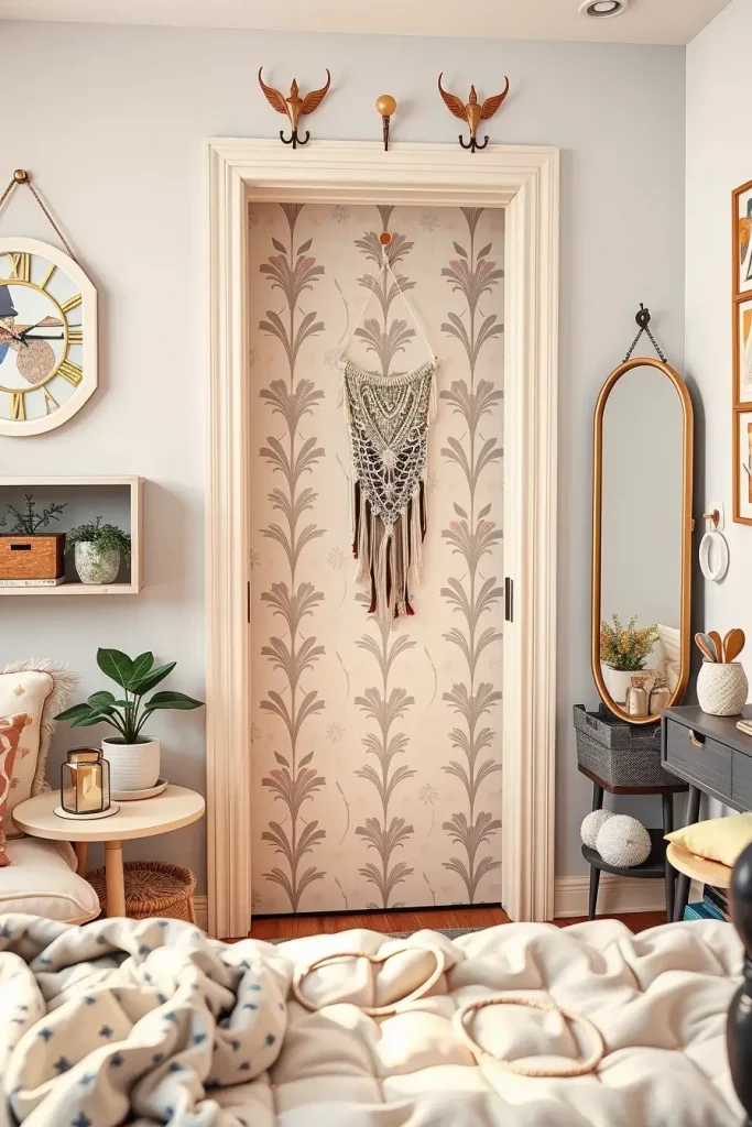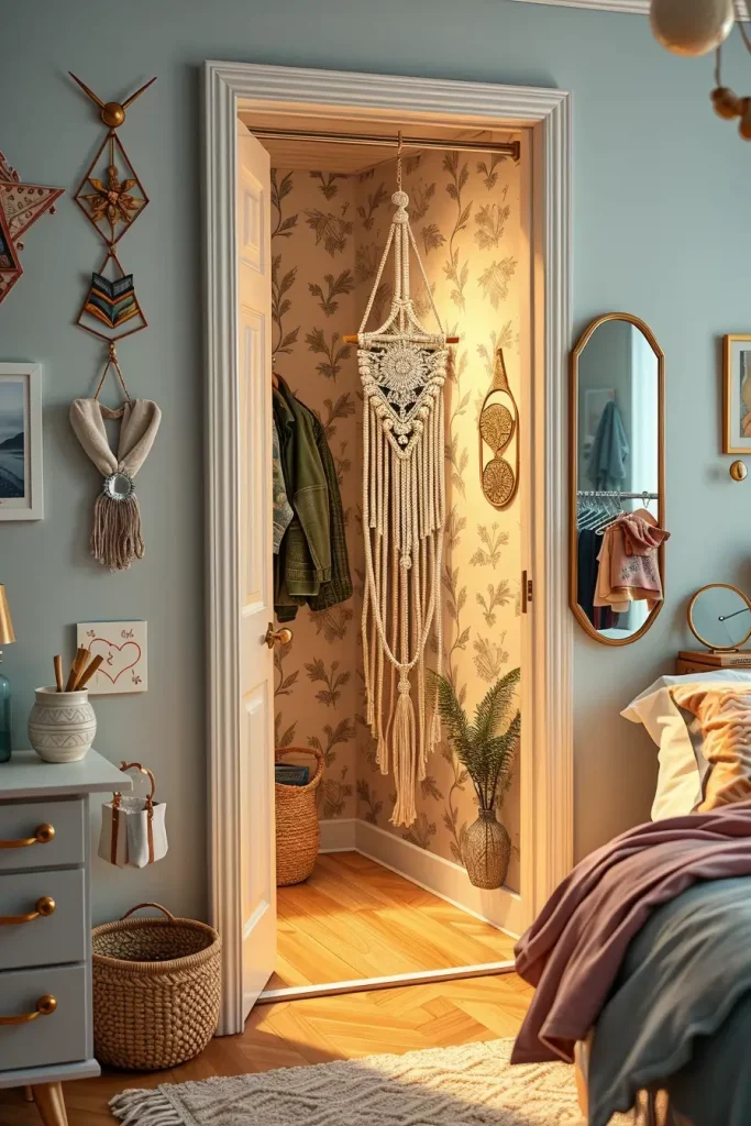 Attempt to paste something removable on the door like making use of washi tape stripes or removable wallpaper or contact paper. Small do-it-yourself boards such as cork, pin board and magnetic organizers can also be hung. My mom made me a faux macrame curtain to cover my closet door, and it turned out to be one of the complimented features in my room.