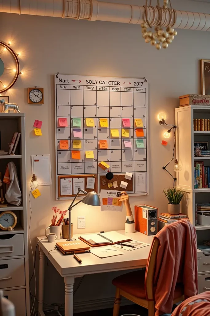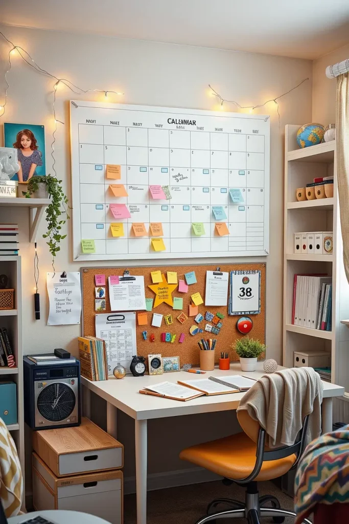 Take a big cork board or a dry erase one, cover the week/months with the painter tape or thin strips of washi, and make each of the classes or activities a different color. Assignments, exam, and events can be put on sticky notes or colored tags. Decorate the calendar putting it in a frame using the use of LED lights or plastic vines. It’s not just functional—it’s an art piece.