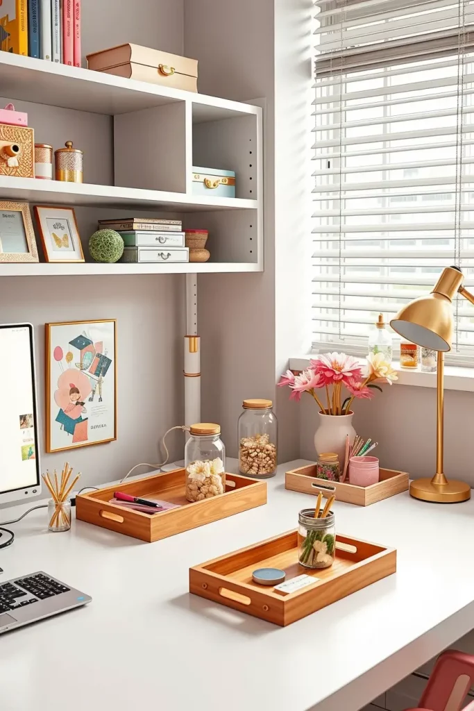 Clean and fashionable study area counts a lot in terms of productivity. I end up making my desk organizers out of such household items as cereal boxes, glass jars or wooden crates. It is not only cheap, however, it also allows my person to coordinate colors and sizes depending upon the arrangement of my desk.