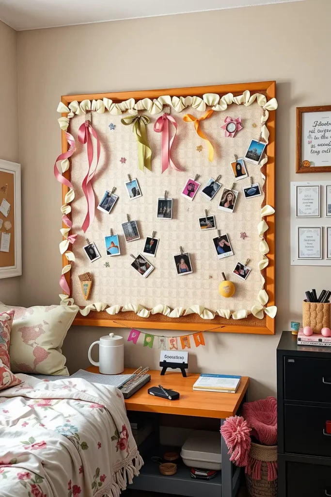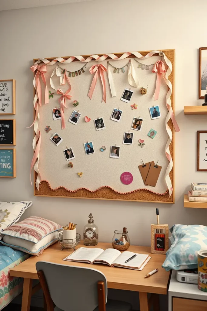 DIY bulletin board is usable and can also look nice. I keep mine with to-do lists, inspiration and even jewels. Creating my own by hand I can choose a size and the colors to perfectly match the rest of my dorm decoration.
