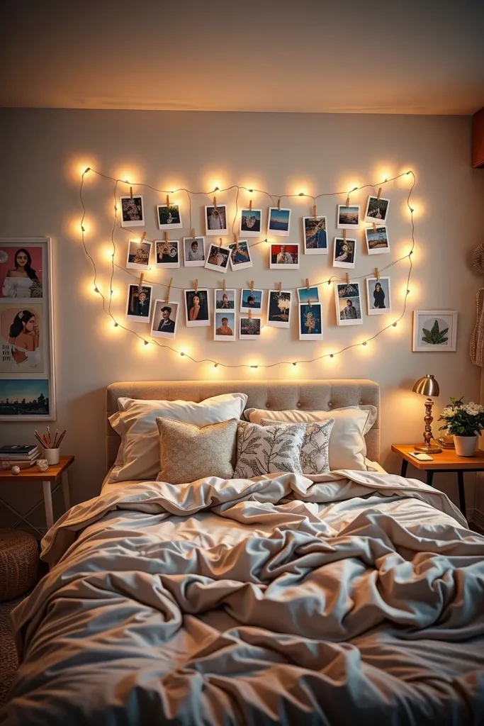 Fairy lights photo exhibits are a thing that I personally like to combine elements of ambiance and memory-keeping. They give mood lightening or they give a personal gallery which is ideal in the case of making dorms less sterile and friendly. The glimmer of lights poses so well under the night lights and brings that Pinterest quality.