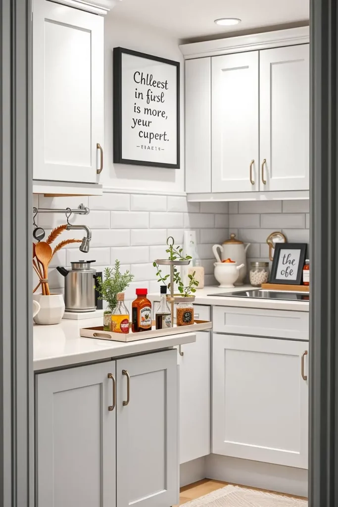 The styling of small kitchens needs to be done with exactness. Every available space matters to me which is why I focus on vertical arrangements and multi-purpose accessories as well as compact storage solutions. A neutral color palette consisting of white or light gray or warm taupe serves best for small kitchens because it creates visual openness while accents should remain minimal and impactful.