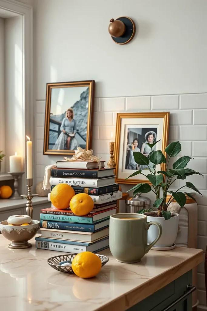 Using cookbooks as part of kitchen counter decoration stands as my preferred method to introduce both style and functionality into a space. Cookbooks reveal your food personality and simultaneously create visual appeal by adding texture as well as color while providing height to the counter. Selected cookbooks turn into attractive kitchen decorative items that enhance your overall design rather than disrupting it.