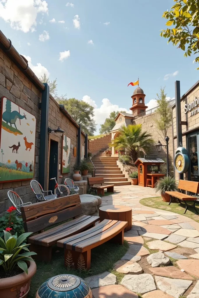 What I would add to this space is interchangeable signage or panels so the village can change themes over time, keeping the environment fresh without major reconstruction.