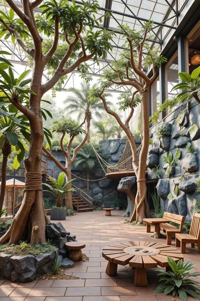 I design jungle adventure outdoor areas as immersive environments that combine active play with visual storytelling. These spaces are organized to encourage climbing, exploration, and imaginative role play while maintaining clear sightlines for supervision. In my work, I see this concept as highly practical for 2026 because it supports physical development without relying on traditional playground layouts.