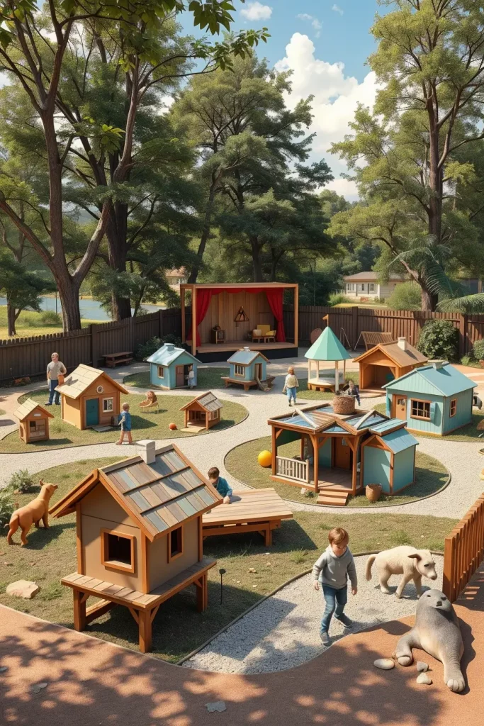 From my experience, fantasy villages are among the most socially engaging outdoor environments. Designers featured in Parents Magazine often note that children thrive in scaled-down environments because they feel ownership and confidence, and I see this consistently when kids invent shared stories together.