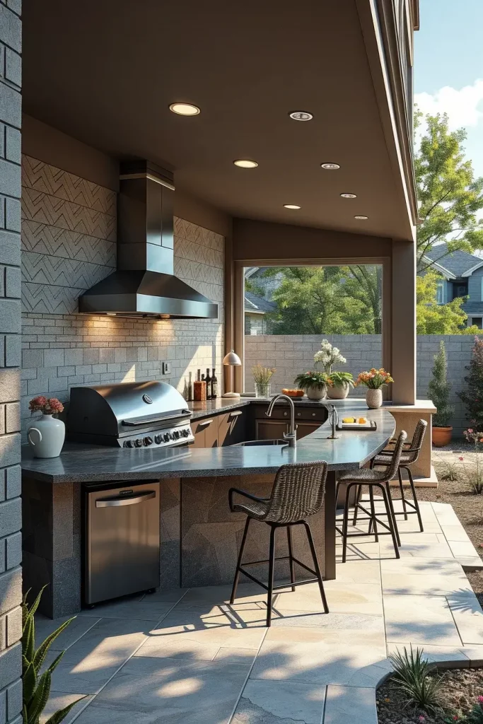 Futuristic Outdoor Grill Area Ideas 2026 With Bold Geometric Layouts