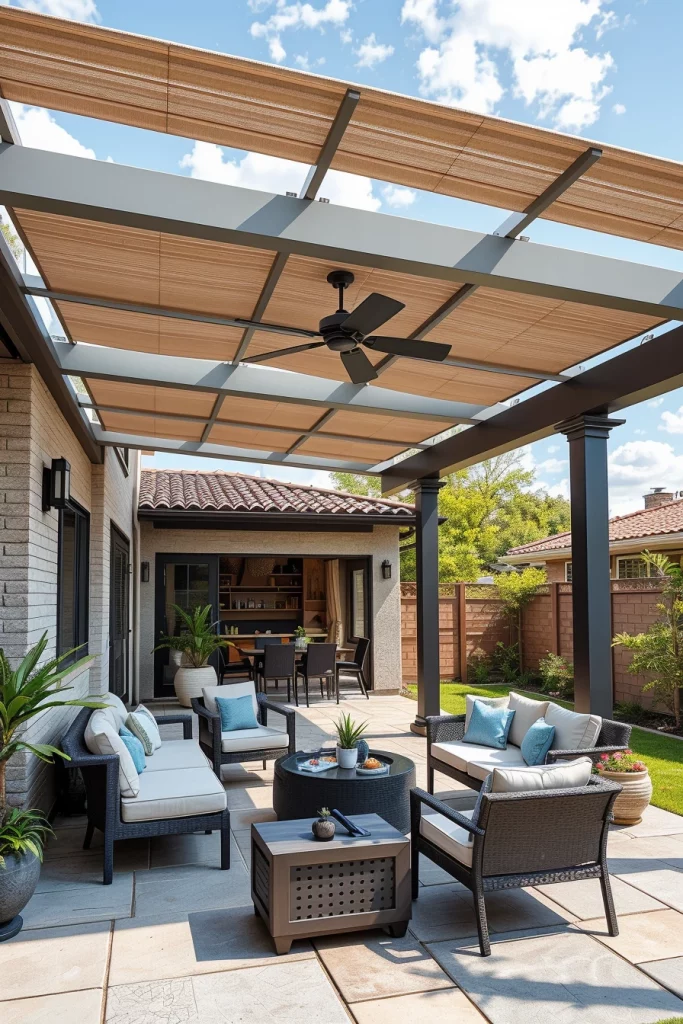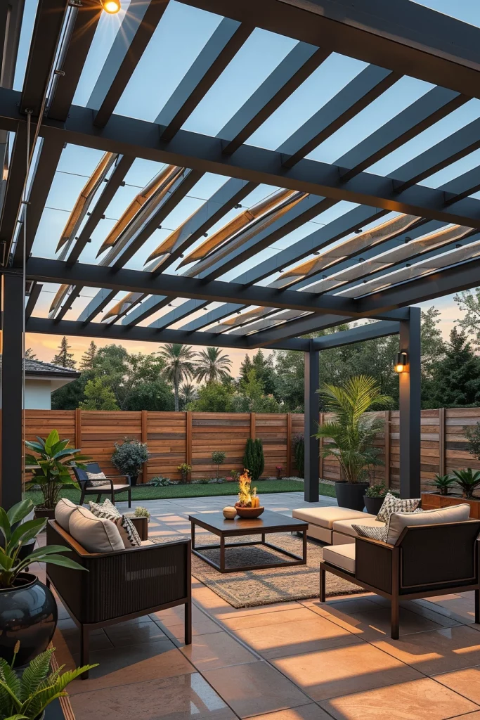 Flexibility defines the most advanced pergola ideas 2026, and adjustable or retractable roofs are central to this trend. I design these pergolas to adapt instantly to weather changes, offering full sun, partial shade, or complete protection as needed.