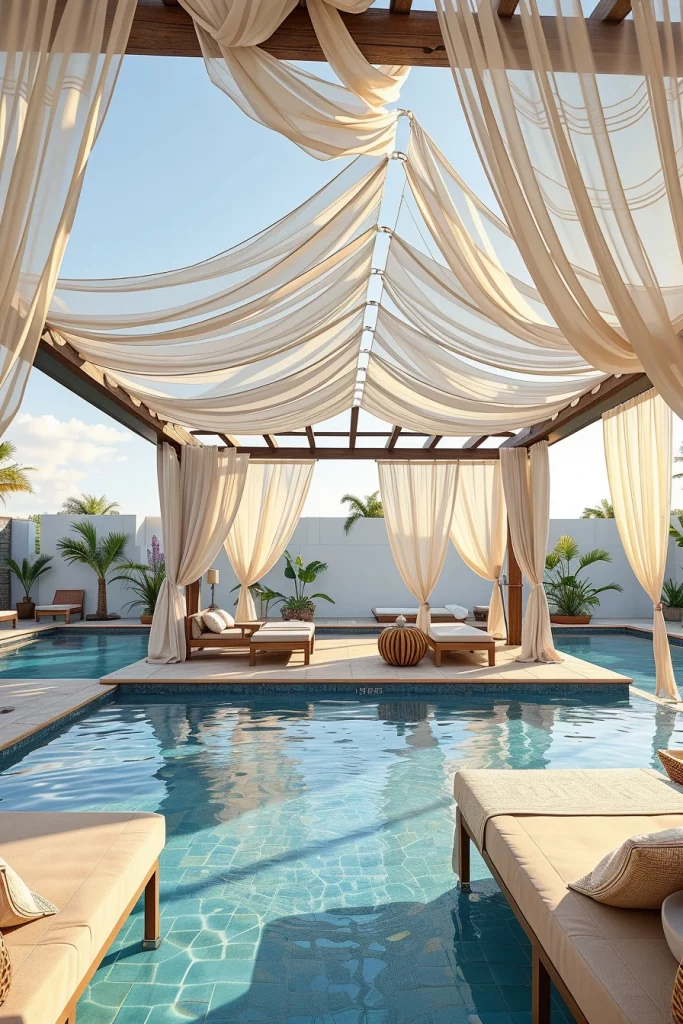 In poolside environments, I design pergolas as transitional spaces between water and lounging areas. In 2026, these structures emphasize openness, airflow, and visual lightness while still offering essential shade. I often position the pergola to frame the pool view, creating a resort style atmosphere that feels intentional and calming.