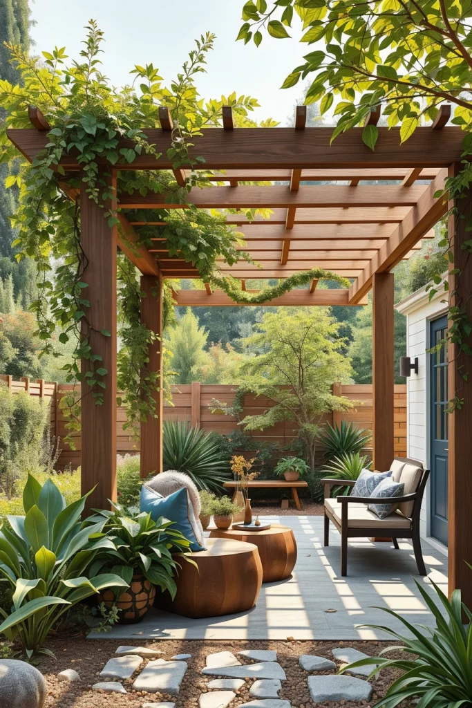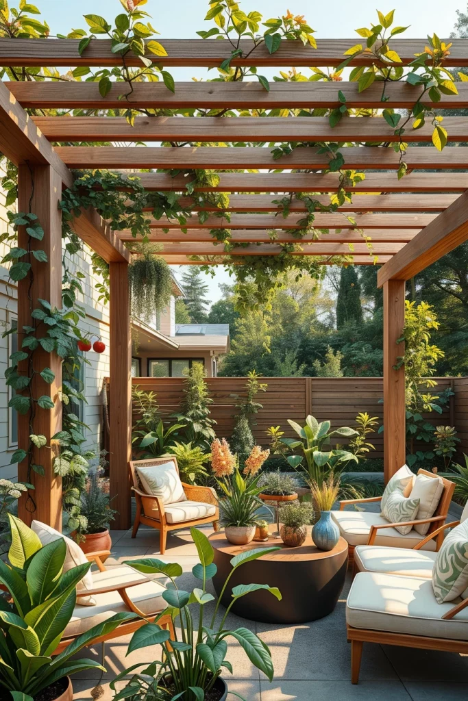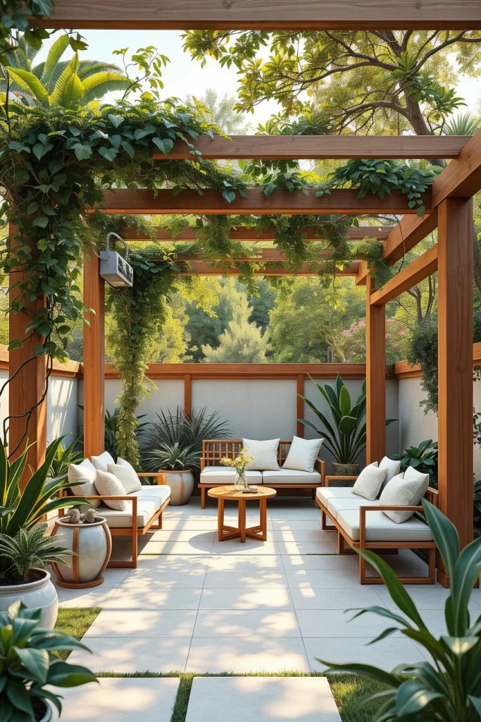 Sustainability is central to forward-thinking pergola ideas 2026, and I approach eco-friendly design as both responsible and visually appealing. These pergolas emphasize renewable materials, passive cooling, and reduced environmental impact without compromising modern aesthetics.