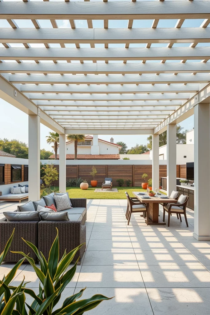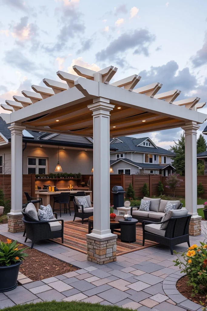 I approach modern outdoor living in pergola ideas 2026 as a continuation of interior design rather than a separate zone. These pergolas are defined by clean geometry, open layouts, and a seamless transition between indoor and outdoor areas. I focus on pergolas that frame seating or dining zones while maintaining visual openness, allowing natural light and airflow to remain central to the experience.