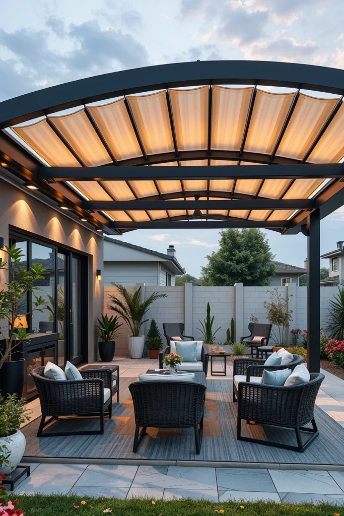 Futuristic pergolas in 2026 represent the intersection of technology and architecture. I approach these designs with a focus on clean geometry, automation, and adaptability. These structures often feature motorized roofs, smart climate control, and integrated systems that respond to weather conditions in real time.