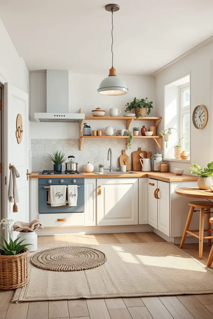 My personal experience and advice given in the Real Simple magazine reveals that paying attention to lighting, textiles, and smart ways of storing things brings essential visual value. I have fitted linen curtains in small kitchens, birch wood pegboards, and cotton runners all of which signifies the Scandinavian character and at the same time lines with the budget.