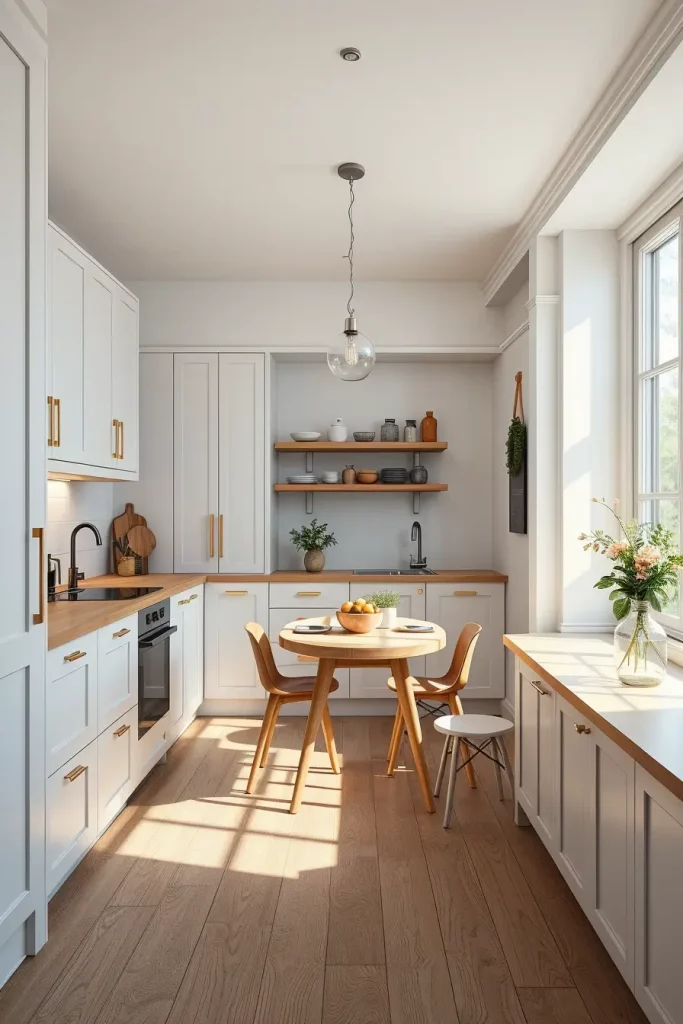 Scandinavian design really lives in small spaces and in my experience one of the most satisfying to design are compact Scandinavian kitchens. It is about smart construction decisions, wall units and efficient furniture. I maximize the space by using such methods as galley-style designs or L-shaped tables.