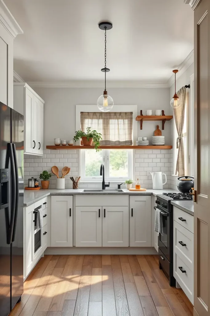 As a rule, I recommend a first coat of white paint on walls and cabinets. In case new cabinetry is too expensive, I choose to substitute the hardware with shiny matte black or brushed nickel pulls. Even simple white pine board or IKEA built-in open meals can perform miracles. The other budget upgrade is the change of lighting-I tend to prefer basic globe lights or wall sconces that are adjustable that can create a very Scandinavian appearance.
