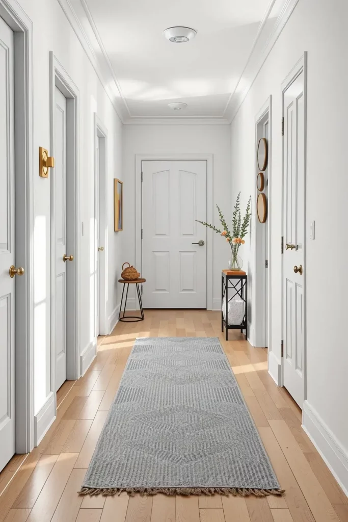 I usually suggest using low-pile rugs in hallways to make them safer. Vertical stripes make the space seem taller, but keeping it light keeps it seeming roomier. If your home sees a lot of action, use materials like natural fibers or those safe for the machine. Placing non-slip pads beneath it is the method I use to avoid it moving.