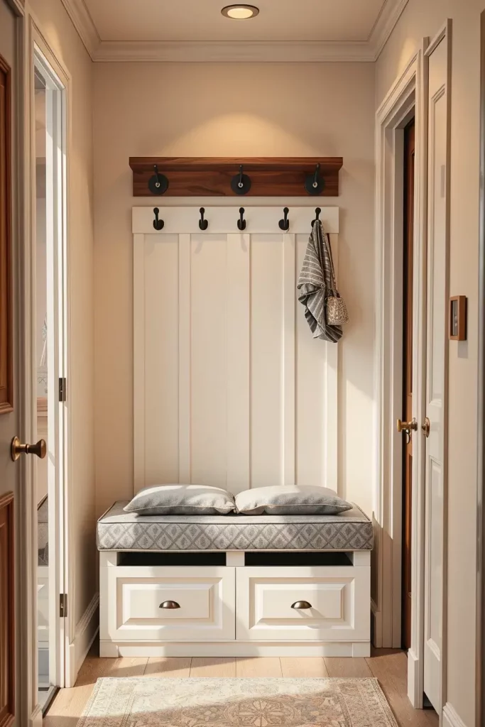 It’s possible to fit a small mudroom in nearly any hallway, even in a little space. It is very helpful when a home lacks a traditional entry area. If you seat a bench in your hall, you can easily drop things here and keep the rest of the house tidy.