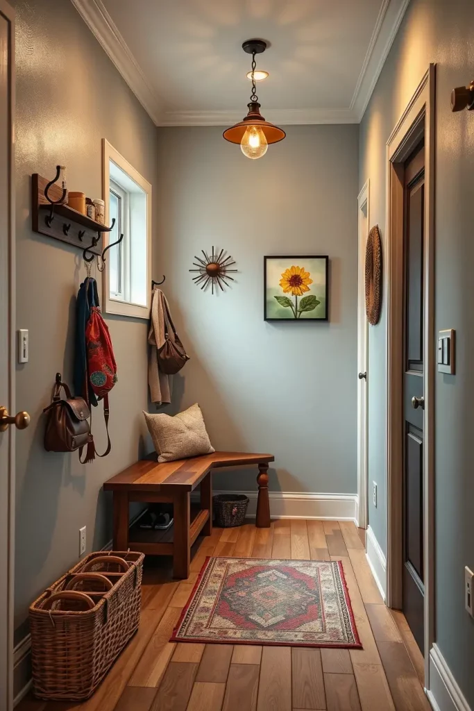 Tall vertical pieces make my design plans extra special when working around hallways. The lack of floor area means that walls should be used for extra functions. I found that higher cabinets or coat trees and even tall wardrobes, help draw the eye up and make the overall room feel more spacious. Hooks, arranged at various levels, make it simple to keep what you use most accessible.