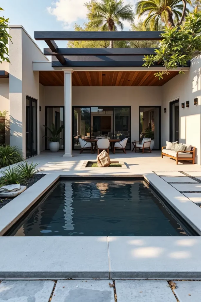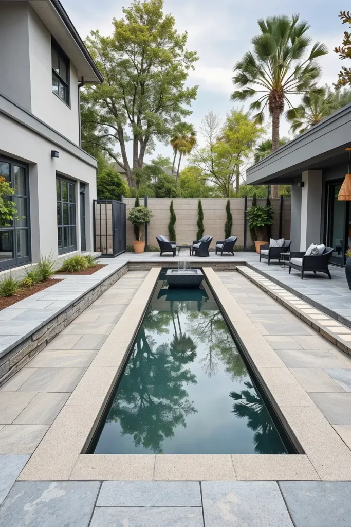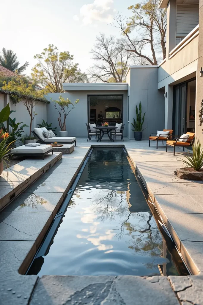 Back Patio Ideas With Built-In Water Channels And Reflective Pools