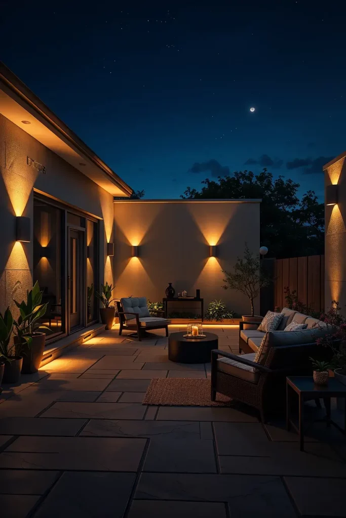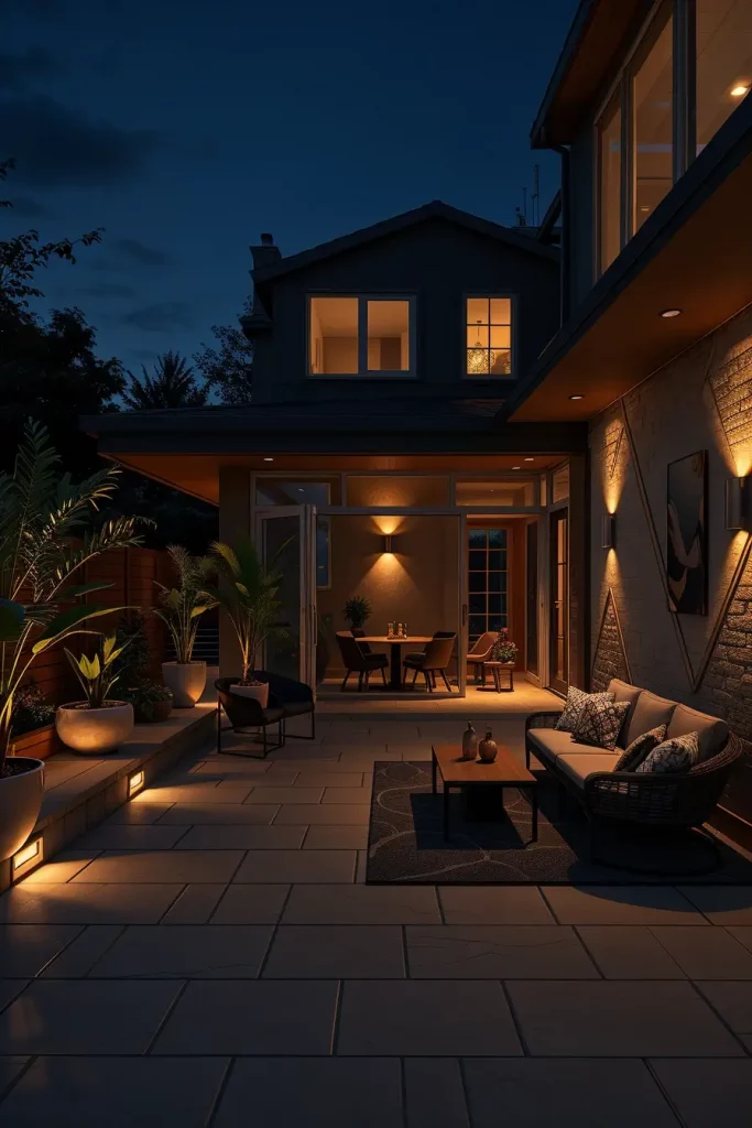What I would add here is a smart lighting control system that allows dimming and scene presets. This ensures the patio adapts easily from quiet evenings to social gatherings without redesigning the space.
