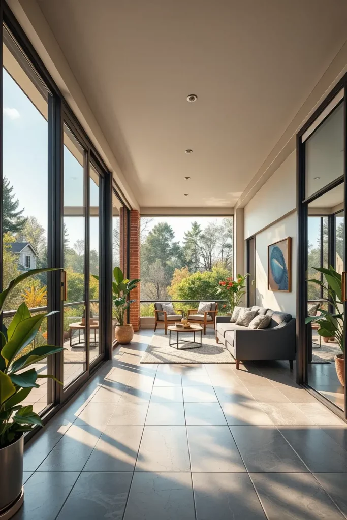I rely on large-format flooring, sliding glass walls, outdoor rugs, and weather-resistant sofas that visually connect the patio to the home. Built-in storage, sideboards, and even outdoor shelving reinforce the idea that this space is meant for daily living, not occasional use.