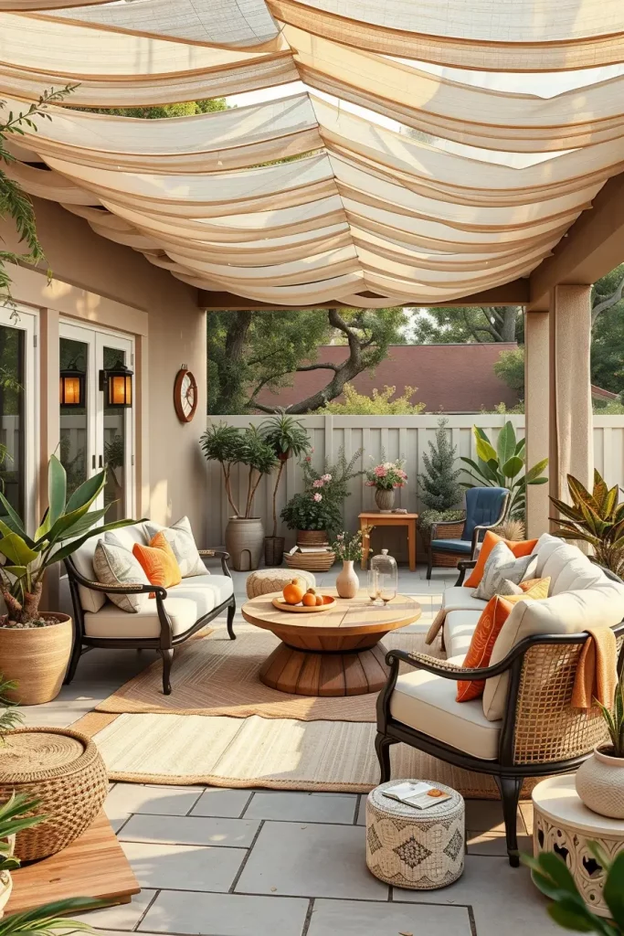 Back Patio Designs With Layered Textiles And Soft Architectural Forms