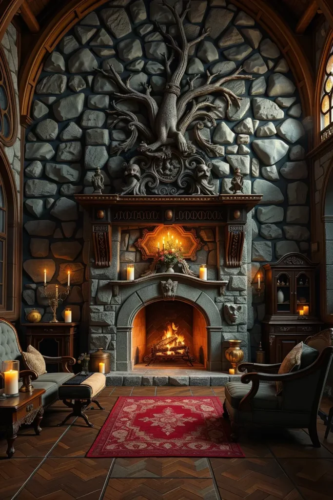 In my experience, stone walls work especially well in smaller areas where you would like to create character without clutter. According to Better Homes and Gardens, textured surfaces create a sense of depth and may make a room seem more immersive, which is an important feature of Castlecore.