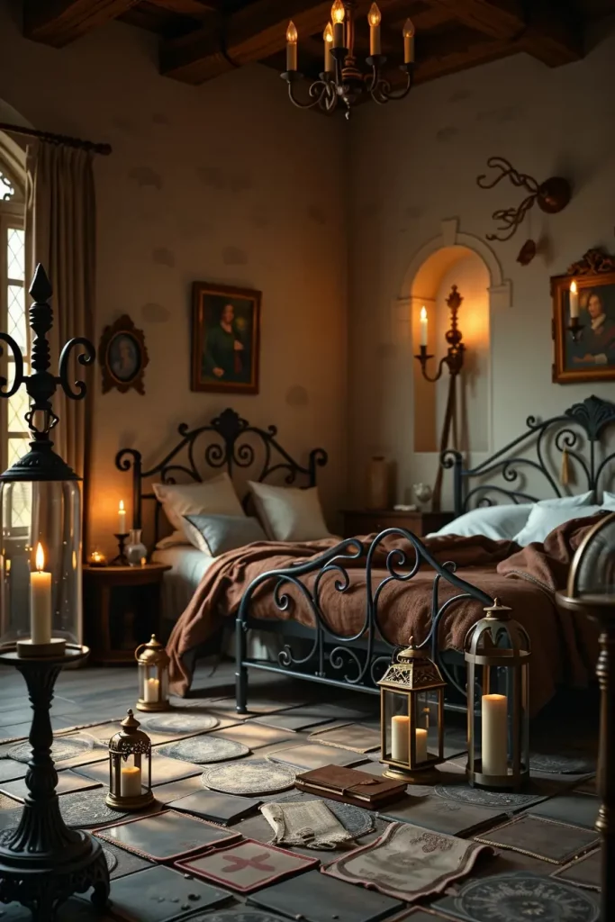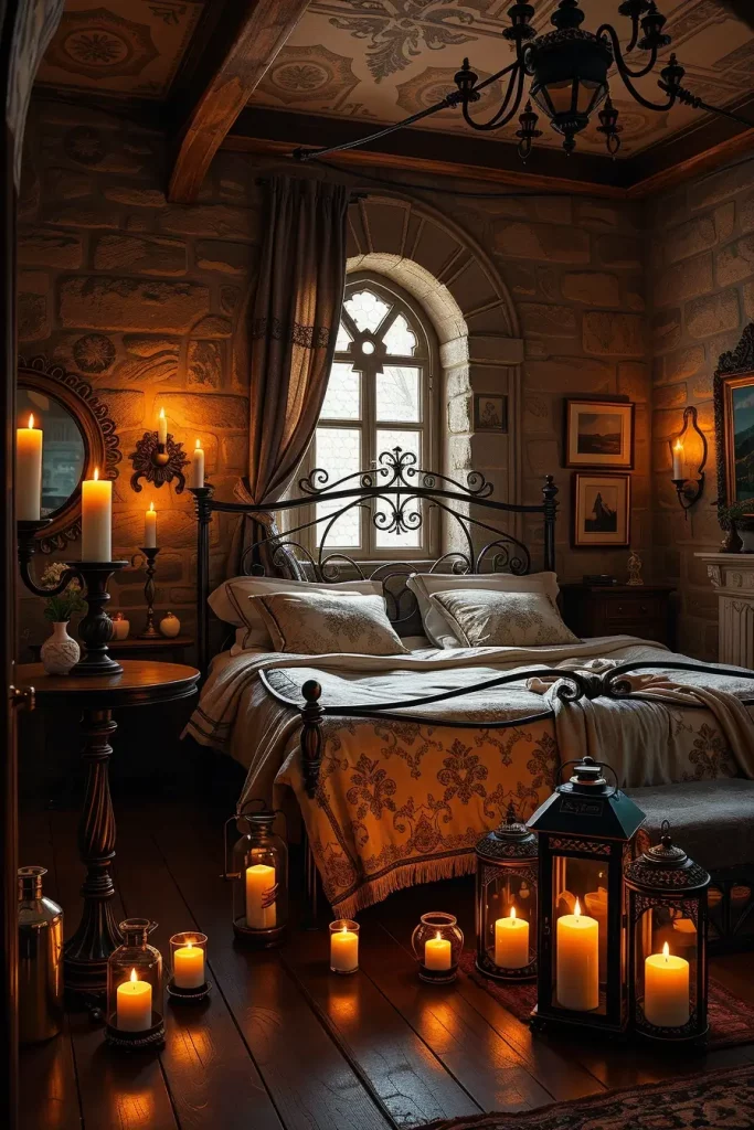 One of the strongest tools in Castlecore design is lighting, and candle holders or lanterns will add a romantic and authentic touch to any bedroom. They introduce layers of coziness and shadow which resemble flickering light of medieval castles.