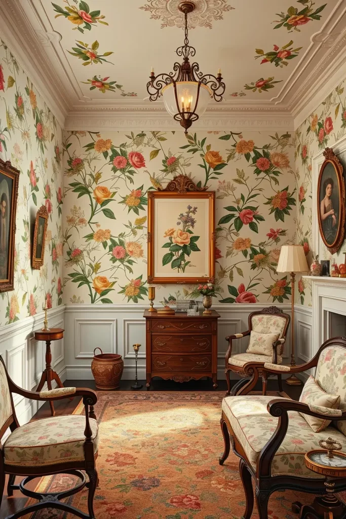 I love colors in my home to be soft or vibrant, with my favorite being oversized flowers or vintage botanicals. Walls covered in these papers suit single accent walls well or rooms with wainscoting beneath, so the effect isn’t too much. I use patterns from floral wallpaper with pieces of upholstery, wood furniture and plain drapes to avoid things looking too busy.