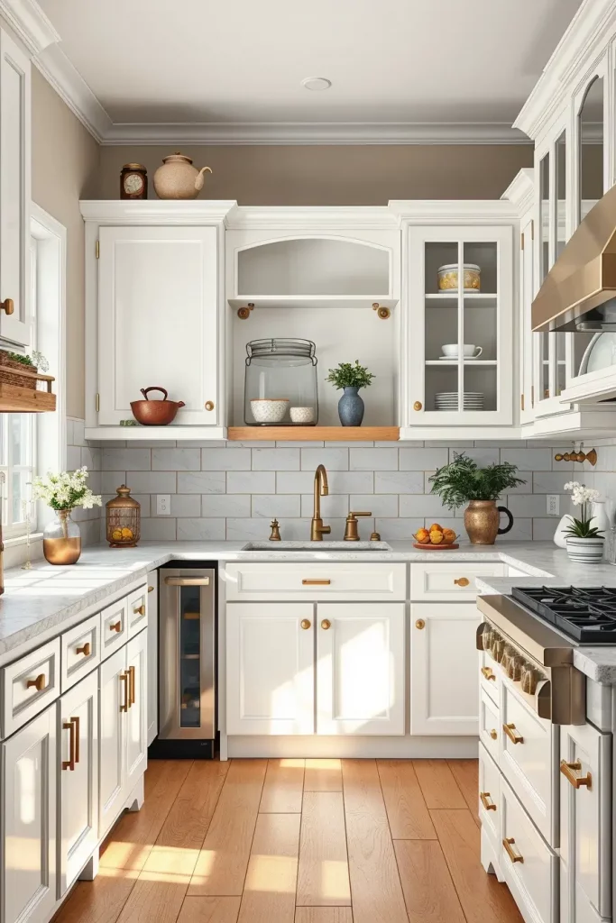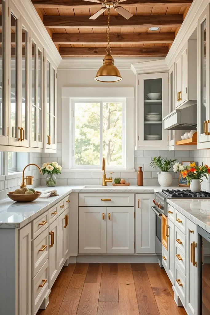A lot of Southern kitchens have white cabinets that are neat and have accent finishes. Because I enjoy the way they look, I usually pick white shaker-style cabinets. The room seems bigger thanks to the brightness and the brass accents increase the room’s sophistication.