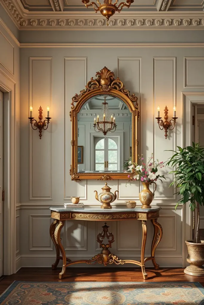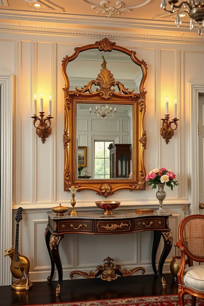 Gilded Mirrors And Wall Sconces For Soft Glow