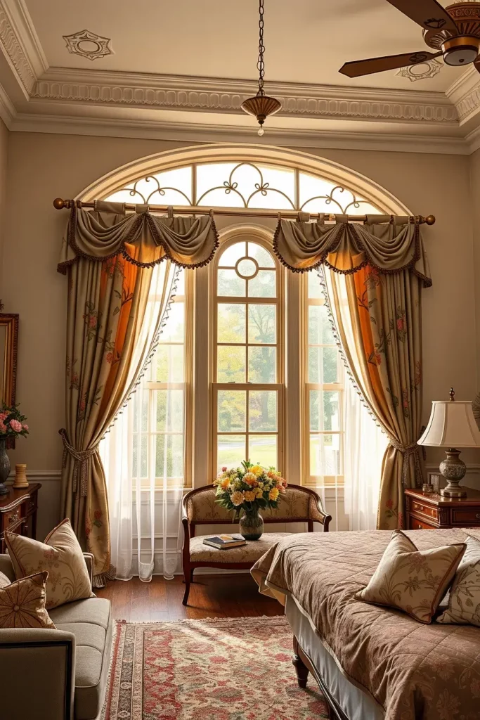 Most traditional Southern homes rely on layered window treatments for their usefulness and a luxurious feeling. Because warm weather can be very hot, it is crucial to be able to control both light and temperature and layered curtains achieve just that. I start by using sheer panels during the day and for evening, I add heavy curtains of cotton, silk or velvet for both privacy and a more elegant look. An upholstered valance is the perfect finish to make your window look elegant.