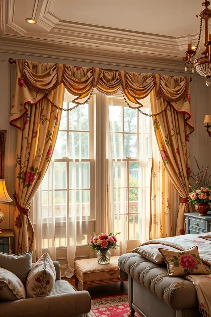 Rich neutrals or simple flowers in the drapes showcase the South’s taste and pleated, scalloped or boxed valances create a look that catches the eye. A basic curtain can be enhanced with tassels or fringe trim and rods with beautiful finials help achieve a traditional finish. To make a room feel bigger and more formal, I usually place the drapery high and wide above the window.