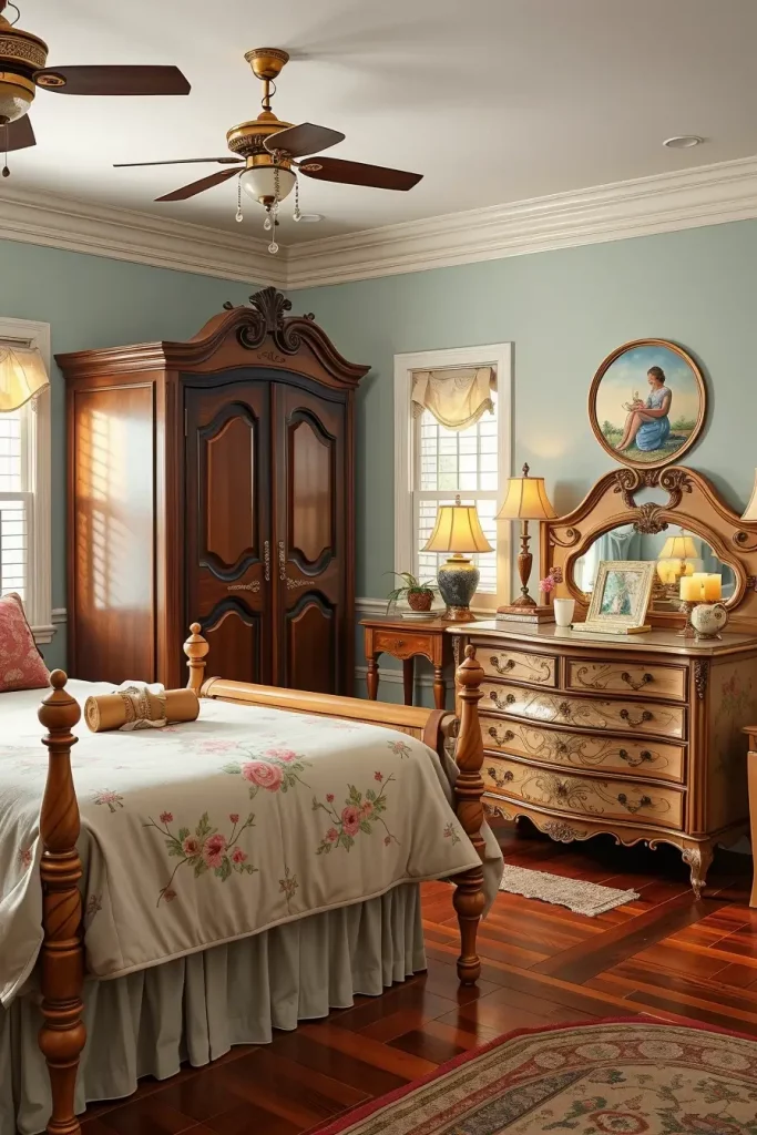 I really enjoyed one project where we revamped a vintage dresser from a Georgia sale and updated its appearance by using lovely creamy paint and gold knobs. It was placed below a tall magic mirror, so everyone wanted to talk about it. Better Homes & Gardens advises that you display your antiques as historical elements, while using colors and lights to tell your story in a modern way.