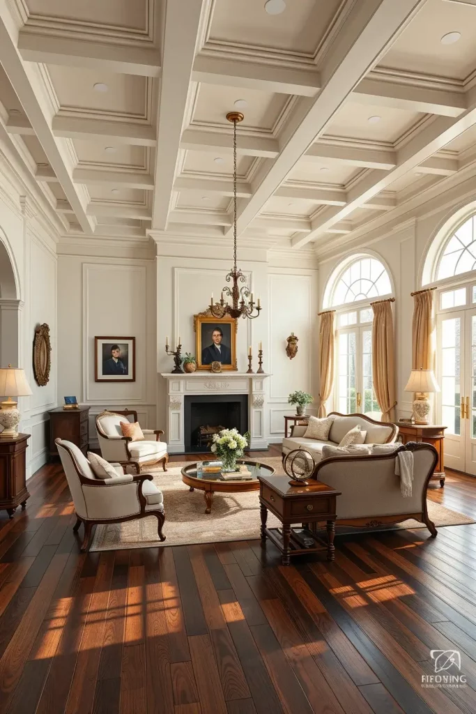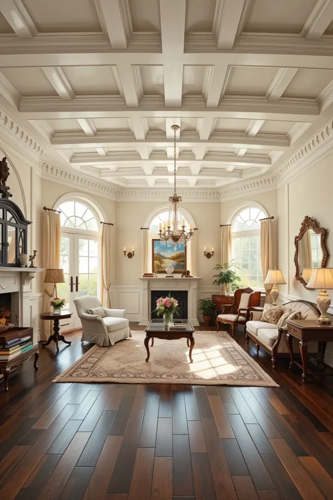 I nearly always use crown molding in all my rooms to set boundaries and give them structure. Coffered ceilings are popular in formal areas because they create interest and divide up high ceilings. Most of these insets are simply painted pieces of wood or plaster, making them practical as well as appealing. Properly made, they highlight different points of light and dark.