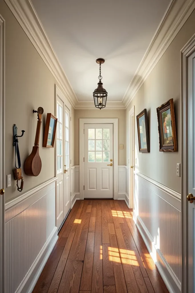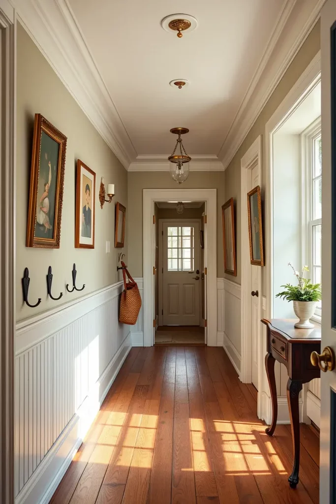 You might enhance beadboard spaces by providing hooks to store hats or baskets or by painting the ceiling to match for a more interesting touch.