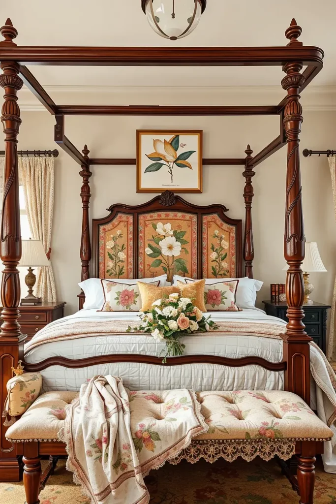 A four-poster bed is an important aspect of Southern guest rooms. It strongly represents the union of history and comfort. To me, mahogany or cherry with crisp white bedding, plus a floral quilt, makes the room feel right. A room with a four-poster bed feels luxurious and elegantly aged and doesn’t go out of fashion.